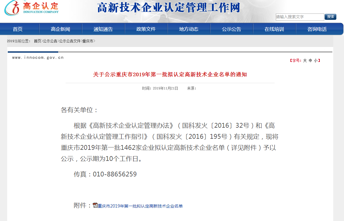 经重庆市科学技术局、重庆市财经局、国家税务总局重庆市税务局审批,我企业顺利通过“高新技术企业”授牌成立,成为重庆市2019年第一批高新技术企业之一