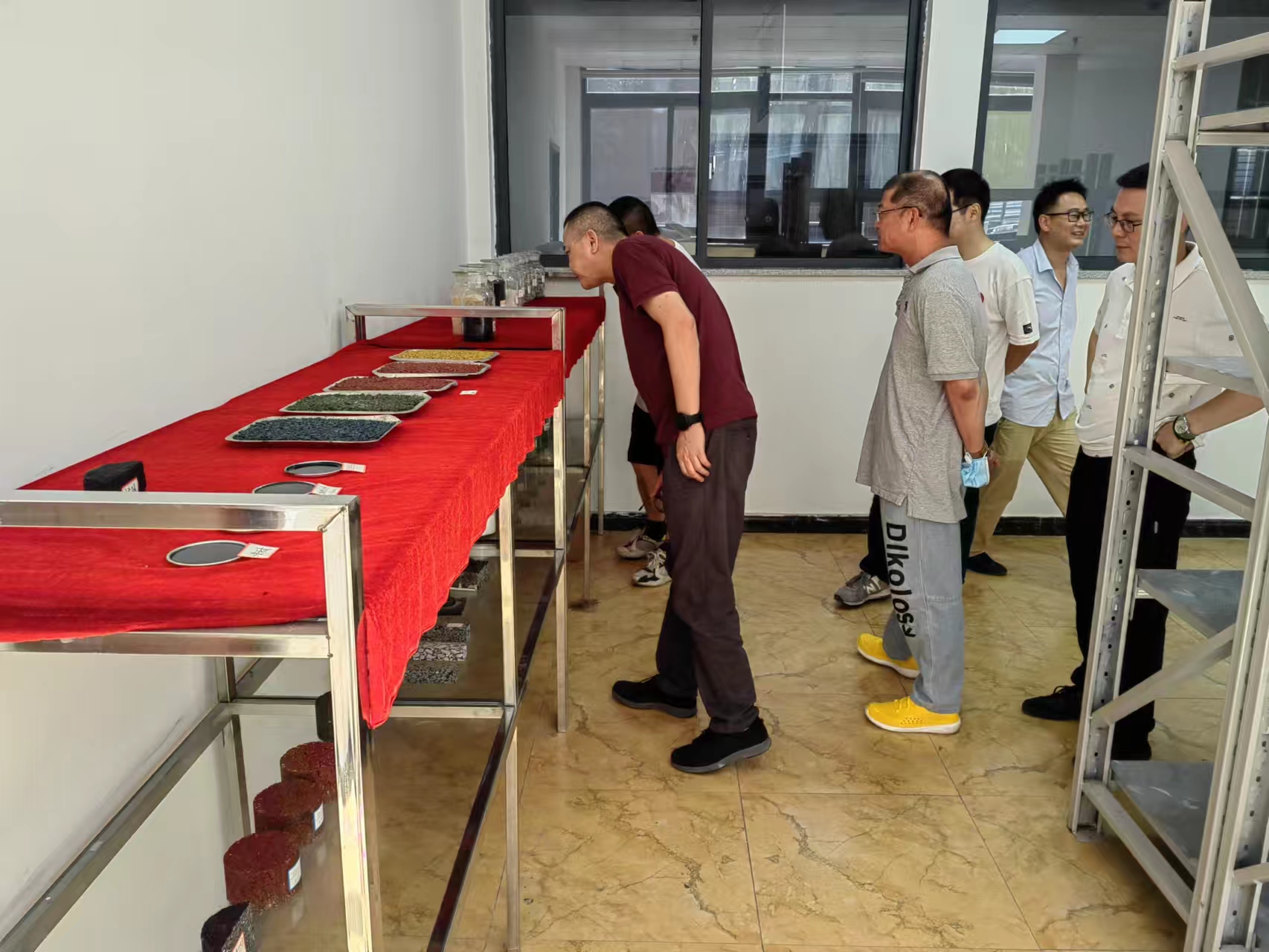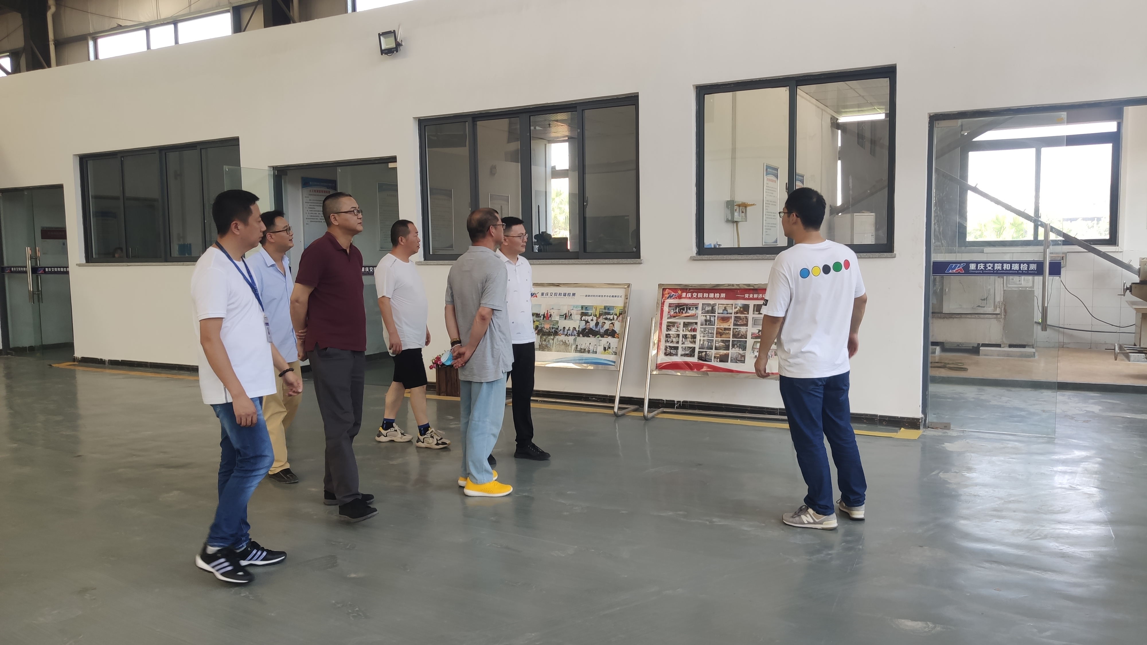 2022年7月8日广昌立骅科技股份有限公司总工程师博士(何志明)、重庆建科新辉交通科技有限公司总经理(张平)莅临我司参观考察,我司董事长杨仕国、总经理孙建禹、质量负责人/高级工程师(周维彬)、研发中心负责人/高级工程师(孙建国)及研发中心主任崔原野带领参观我单位检测中心实训基地、专精特新人才培养基地的仪器设备设施、并介绍科研研究的项目及成果。参访单位领导对我公司多年取得的科研成果堡垒表示赞赏,对公司工程防水体系研究团队及质控检测技术表示高度认同,期望后期工程防水材料新产品参与共同研究发展取得新成果。