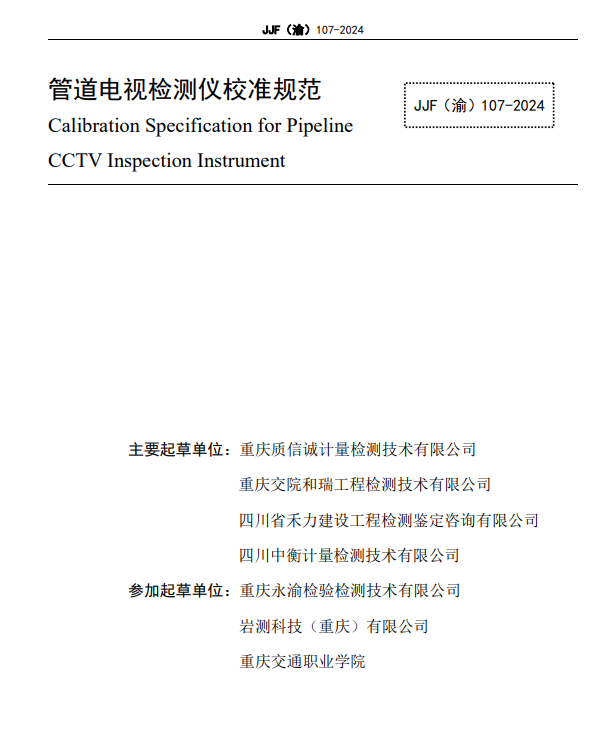 公司科研技术团队高级工程师“周维彬”同志参加起草参编的《管道电视检测仪校准规范》顺利通过重庆市市场监督管理局审批,2024年8月16日发布,2024年11月01日实施!