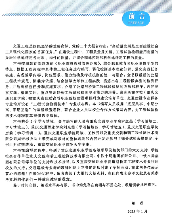 公司领导正高级工程师、副总经理兼质量负责人(周维彬)同志参与的“双高”建设校企合作双元开发新形态信息化教材成果,高等职业教育交通运输类技能型人才培养实用教材,《工程试验与检测教材》顺利通过西南交通大学出版社出版。